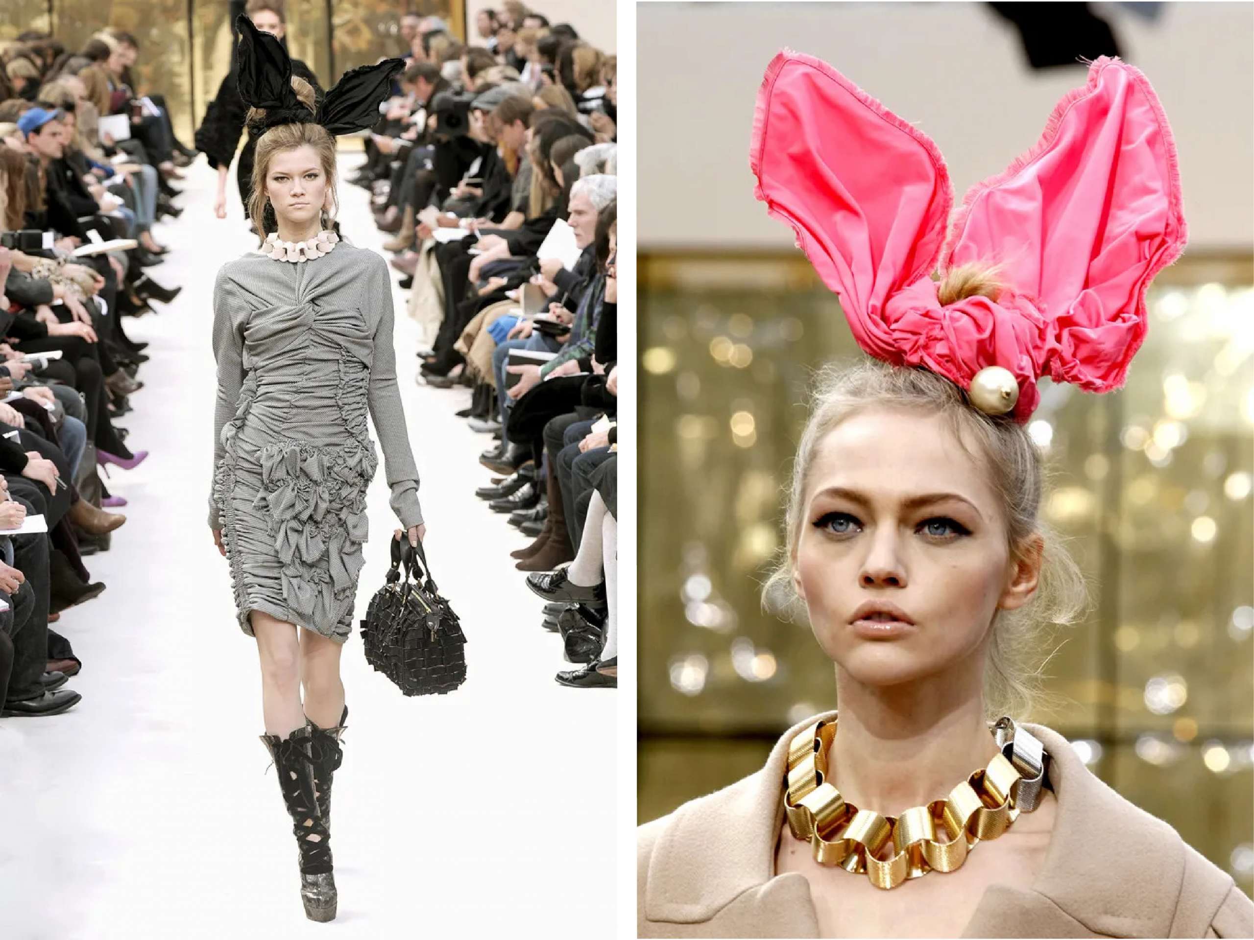 Louis Vuitton 2009 年發表會中,時任創意總監 Marc Jacobs 帶出了法國十八世紀末的沙龍風格,對於以皮具起家的 Louis Vuitton 來說, 2009 年發表會亦是一場華麗的配飾盛宴,搶眼的 Bunny Ears 配上蓬鬆的荷葉邊夾克、大量的褶皺、泡泡裙、鑲有寶石的緞面緊身褲,以及十八世紀最富盛名的法國赤字皇后 Marie Antoinette 的迷你蛋糕蕾絲裙。 Marc Jacobs 的華麗浪漫在 Bunny Ears 的烘托下,更加呈現了十八世紀末巴黎人在紙醉金迷中亦對於未來挾帶純潔幻想的矛盾情愫。