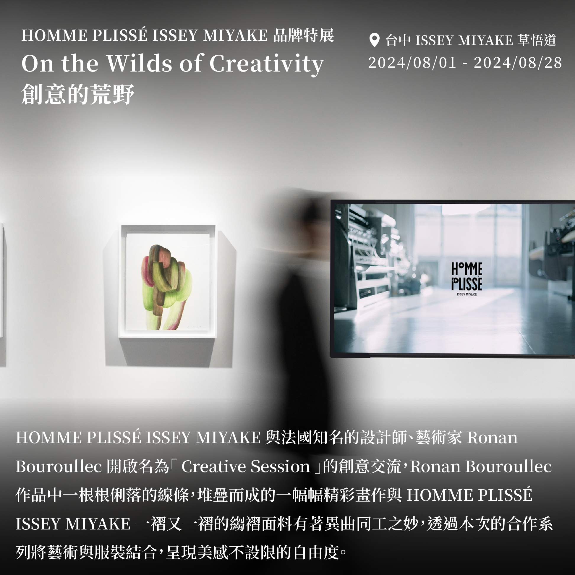 請準備行事曆,8月預報來襲|Monthly Event in 2024 AUG Jonathan T. | 2024-08-07 🔺 呂咅彧與奧茲伯特以相異媒材與情緒,探索個人的過去如何與根深蒂固的文化、政治、歷史共存,思索人的認知如何在歷史背景之間轉變,且承擔了新的寓意。 🔺2024 TFAM年度個展呈現「大家都來看你了─倪祥個展」、「假山水─陳以書個展」、「之間II─徐瑞憲個展」、「帝國的標本─蔡咅璟個展」。 🔺共 生 渴 望 Symbiotic Longing 集合許鶴溪 Brook Hsu、劉茵、楊季涓、王之博四位藝術家們富於⾊彩、質地與⽣命⼒的作品。🔺法國藝術家 Julien Tiberi 朱利安.蒂貝里首次台灣個展「 Flowering Flow 」以抽象和具象交叉表現出他感官中的色彩和圖像。 🔺 HOMME PLISSÉ ISSEY MIYAKE 攜手法國知名的設計師、藝術家 Ronan Bouroullec 打造On the Wilds of Creativity 創意的荒野品牌特展。🔺「台北房客的斯德哥爾摩症候群 那些不光鮮亮麗的部分」展覽以攝影作品結合選書,呈現市井小民略顯詼諧的租屋日常。🔺夏永康將多年來的攝影紀錄交給日本殿堂級設計師 井上嗣也,在拼貼、裁剪之中,圖像在破壞中重生,展現出「混沌」的生命力。 上一張 下一張 Love0Each ModernHOMME PLISSÉ ISSEY MIYAKETAO ART亞紀畫廊北美館奇想會市民書店當下脈動 Each ModernHOMME PLISSÉ ISSEY MIYAKETAO ART亞紀畫廊北美館奇想會市民書店當下脈動